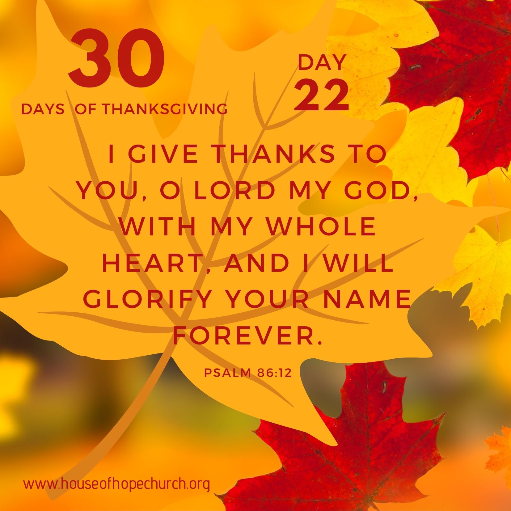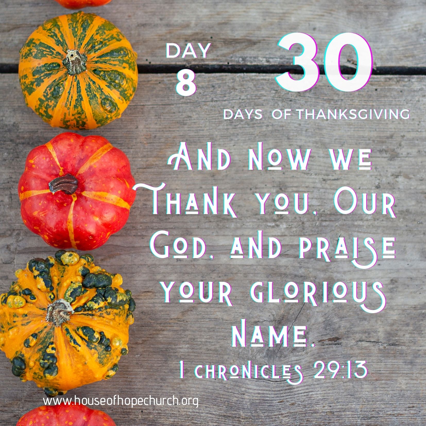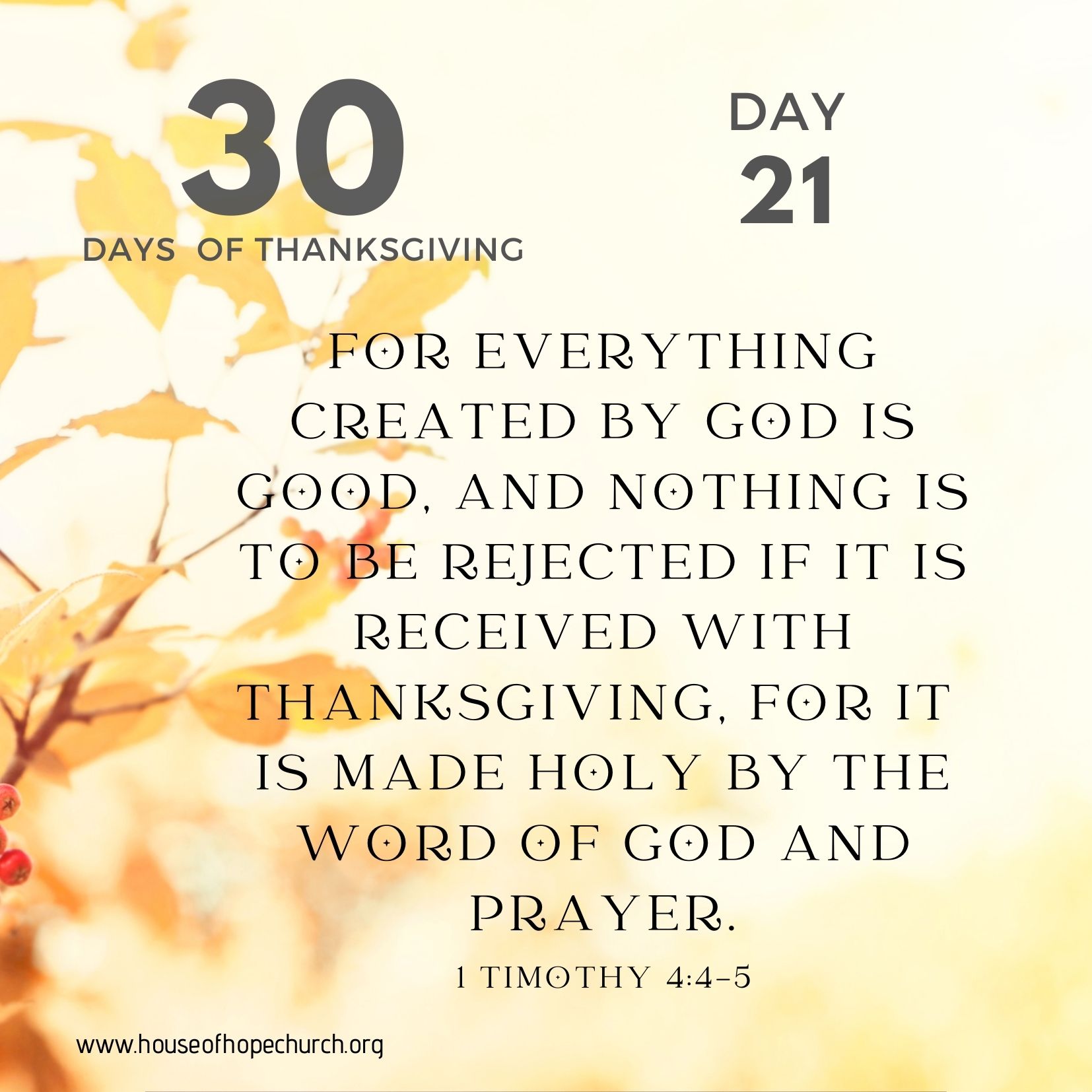 We invite you to join us for 30 days of Thanksgiving… In this busy season, let us pause each day and give thanks for God’s Goodness , His Faithfulness to us in every area of our lives.