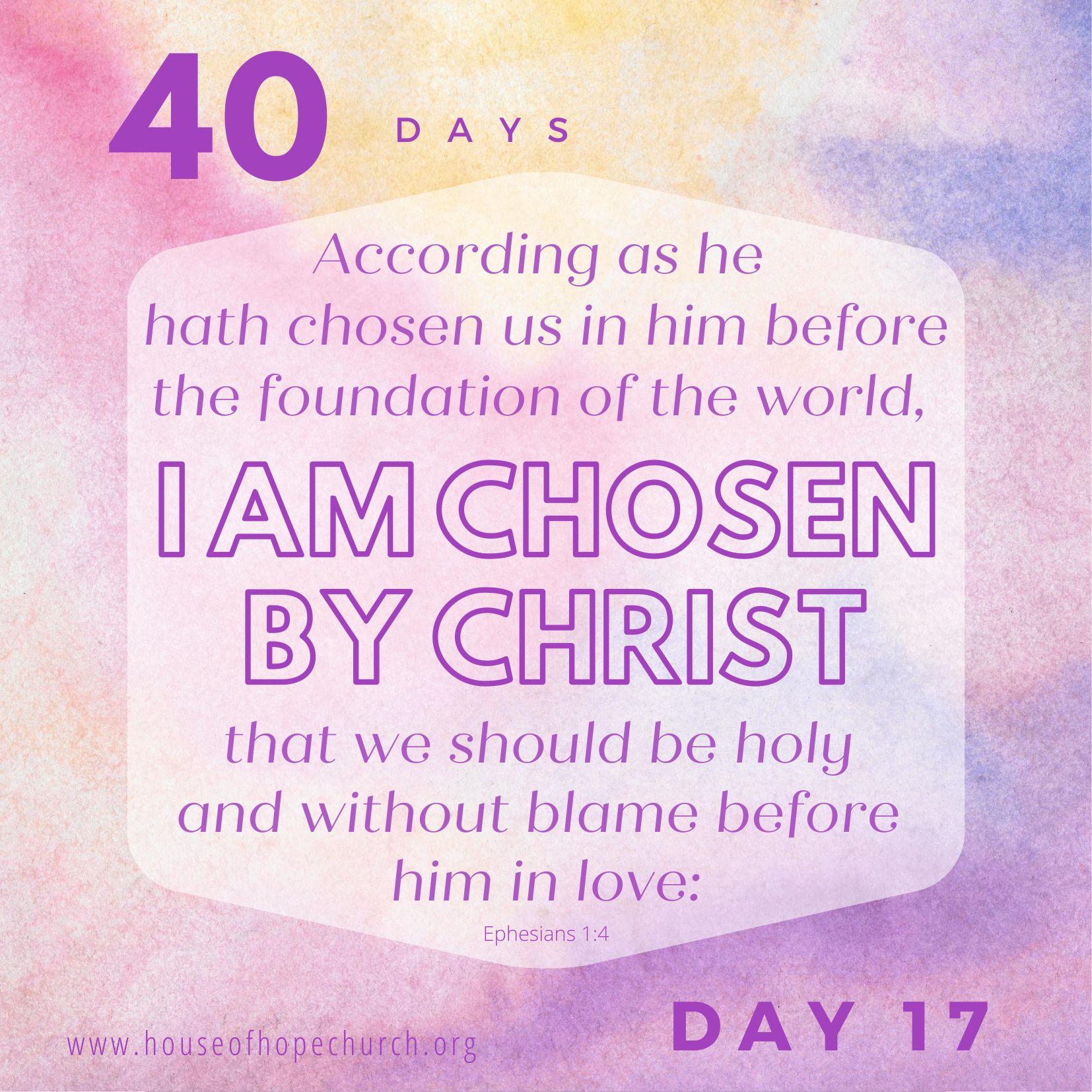 Join us for the next 40 days as we focus on “Who We Are In Christ”. Our prayer is that you will be encouraged and strengthened in your faith walk with the Lord!