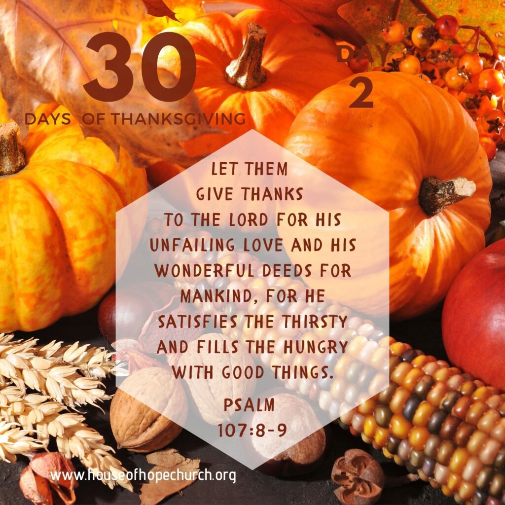 Past Events Events Search and Views Navigation Show Events Search Events Search Events From Search Event Views Navigation View As ListMonthPhoto November 2025 We invite you to join us for 30 days of Thanksgiving… In this busy season, let us pause each day and give thanks for God’s Goodness , His Faithfulness to us in every area of our lives. Oh, taste and see that the Lord is good! Blessed is the man who trusts in Him! November 2 Find out more » + Export Events