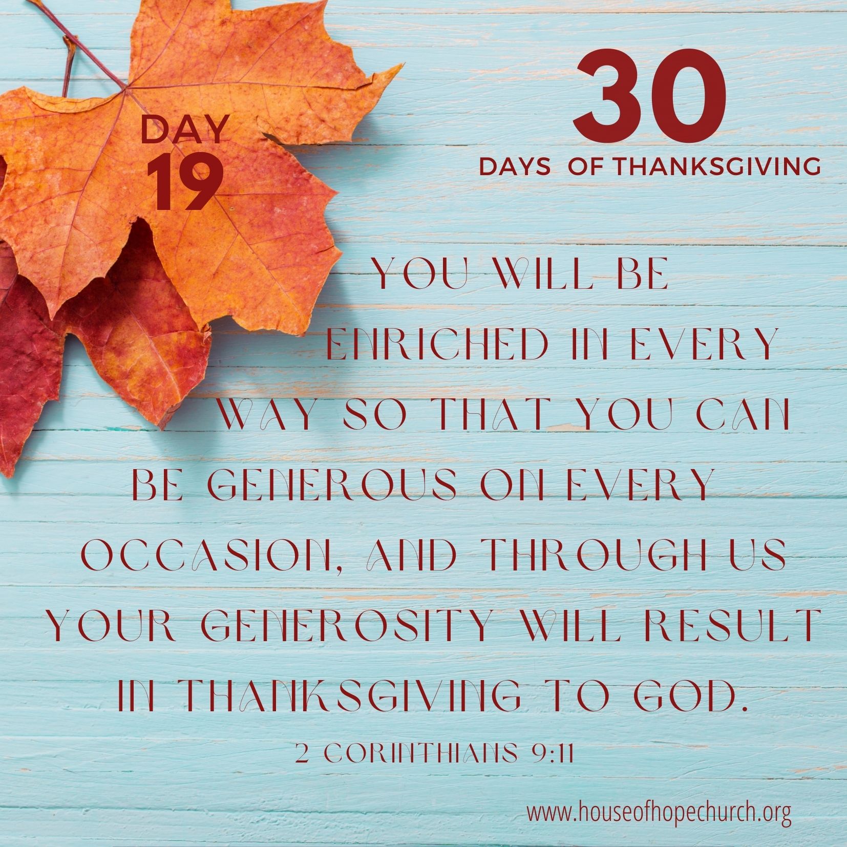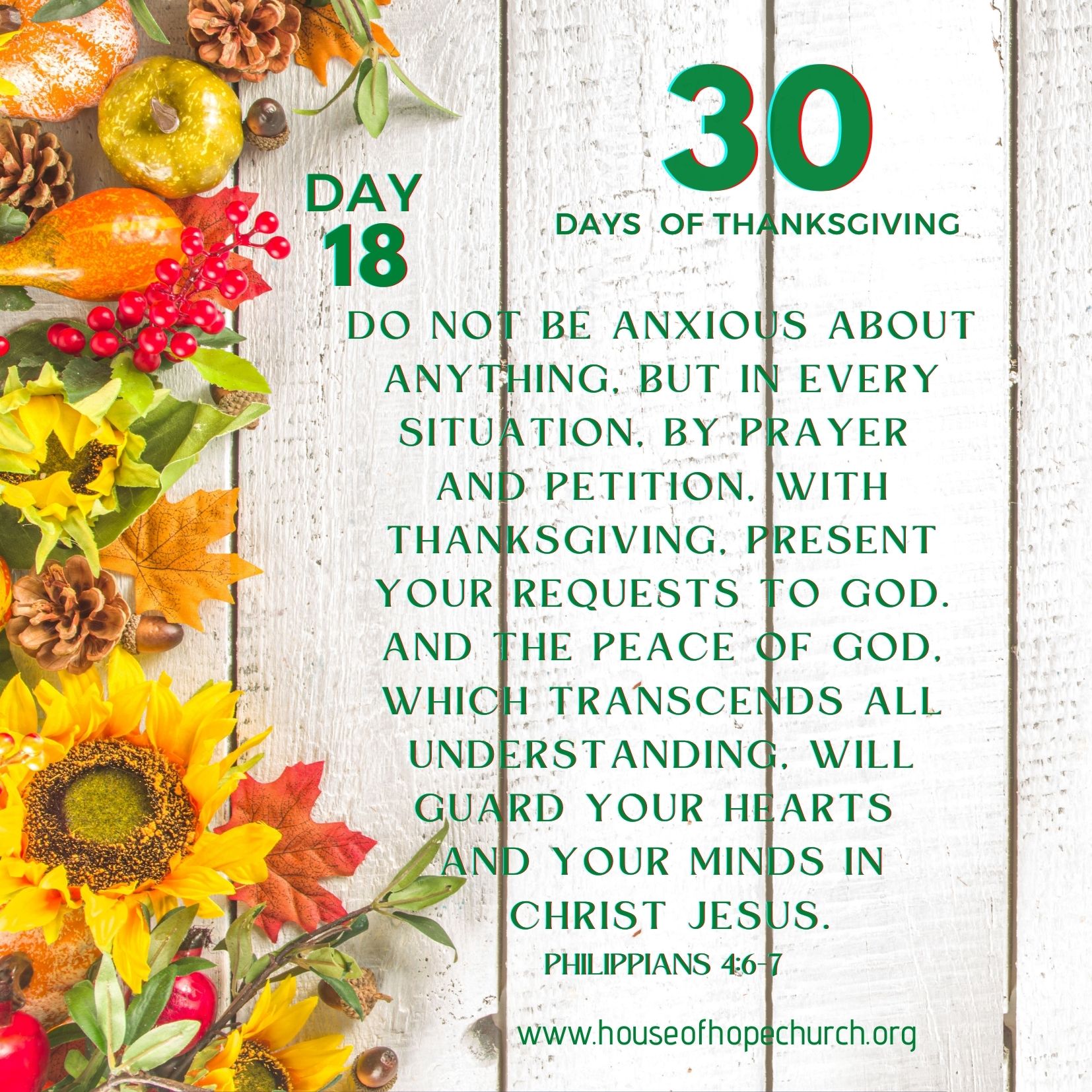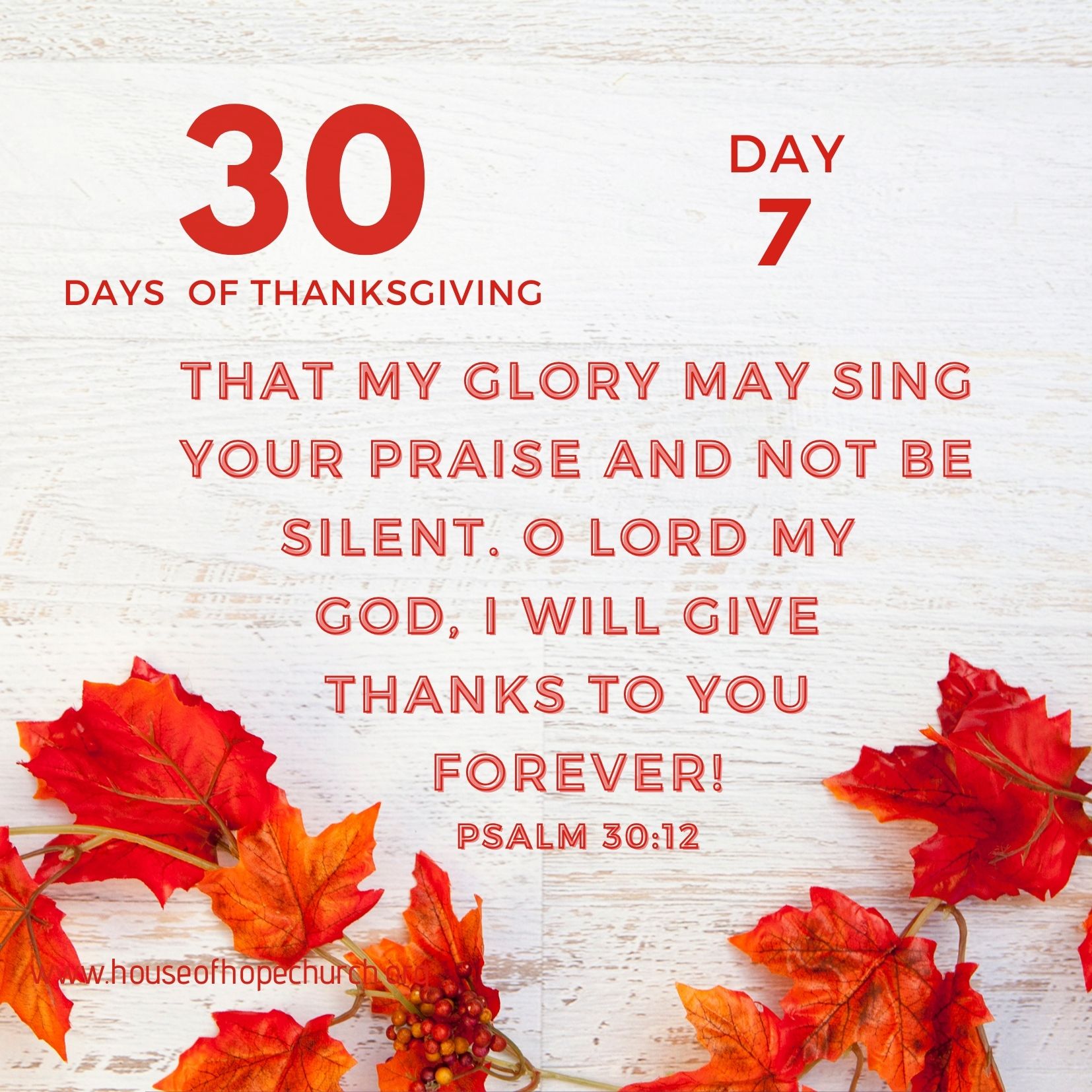 We invite you to join us for 30 days of Thanksgiving… In this busy season, let us pause each day and give thanks for God’s Goodness , His Faithfulness to us in every area of our lives.